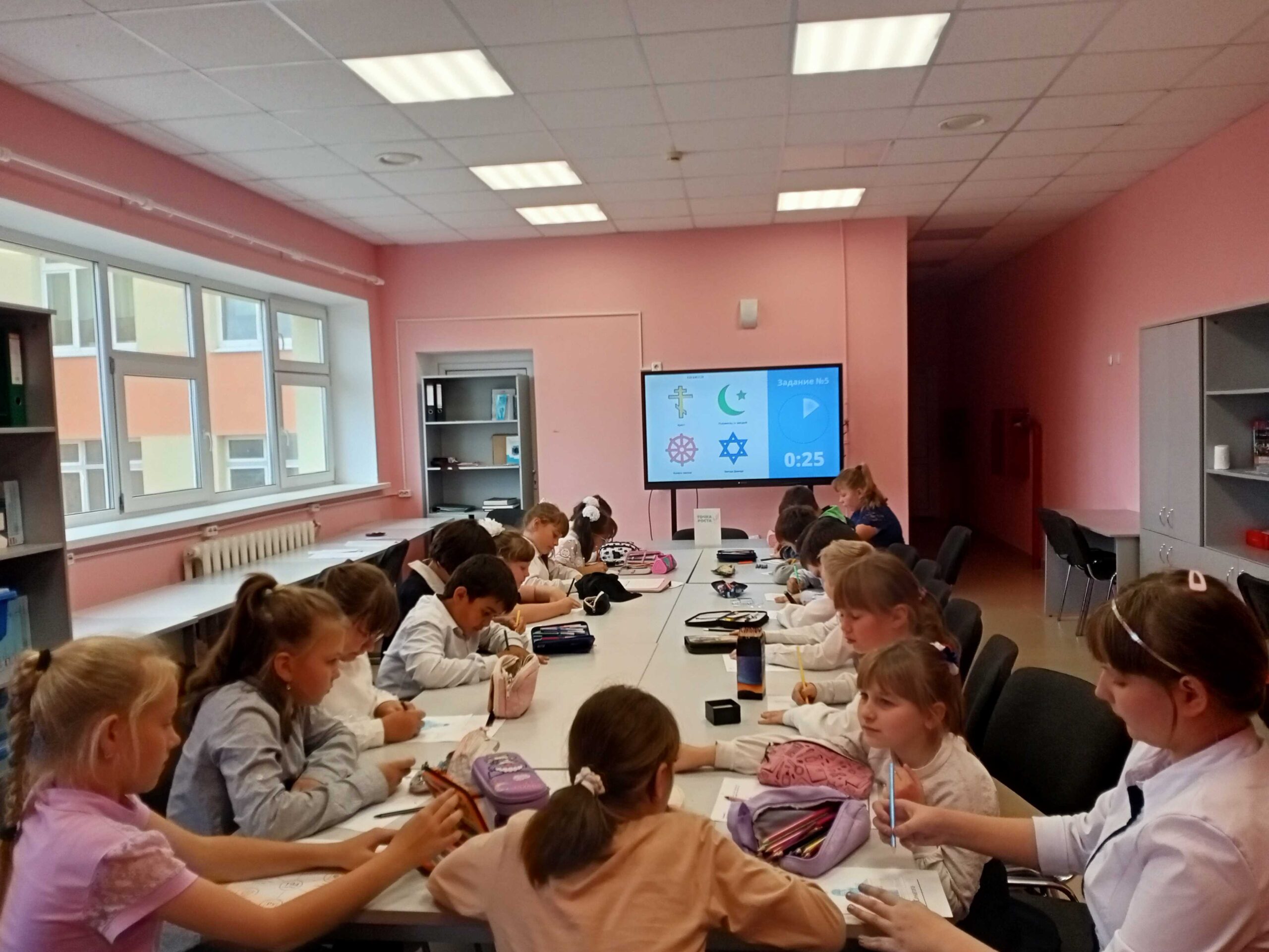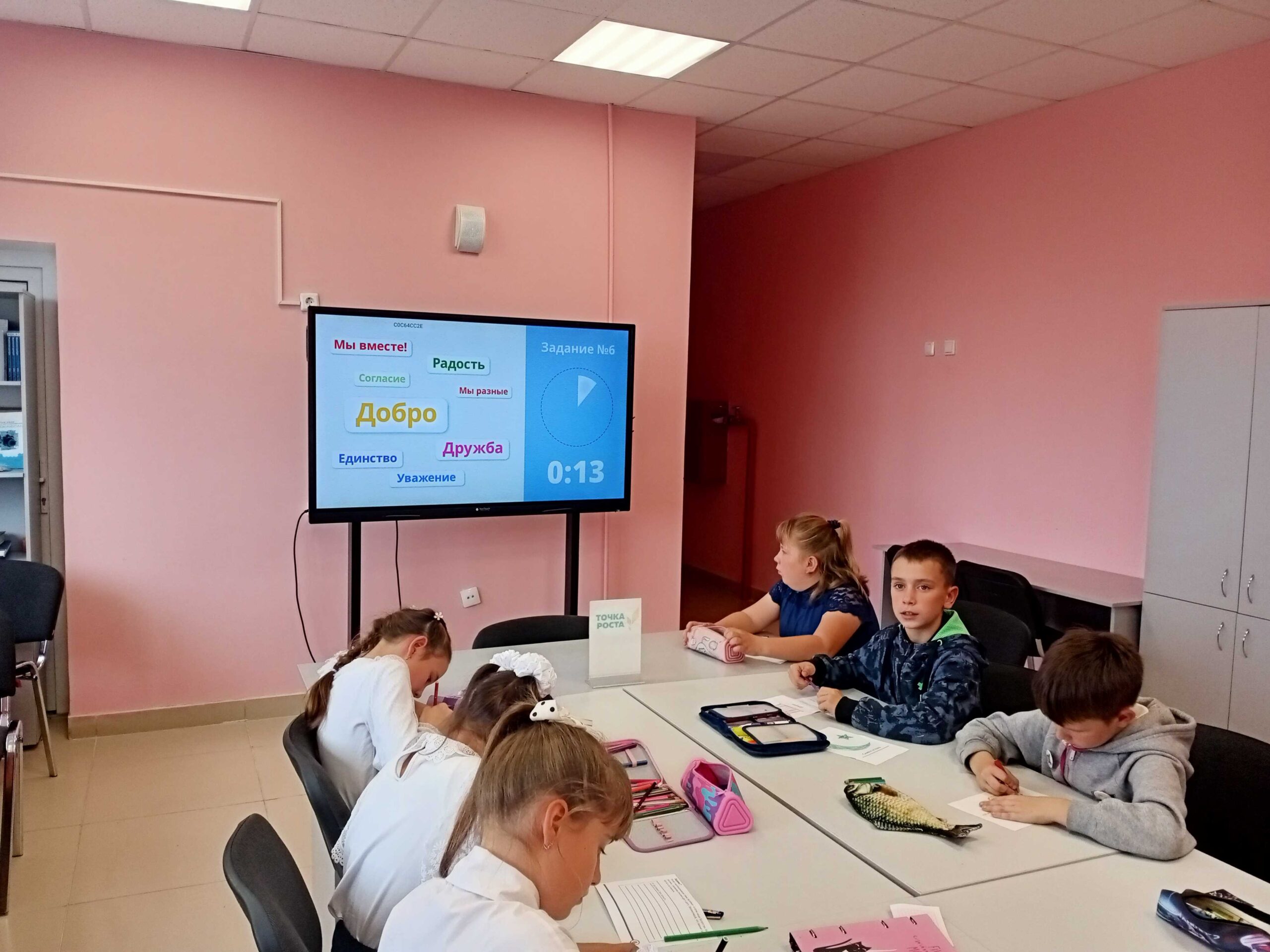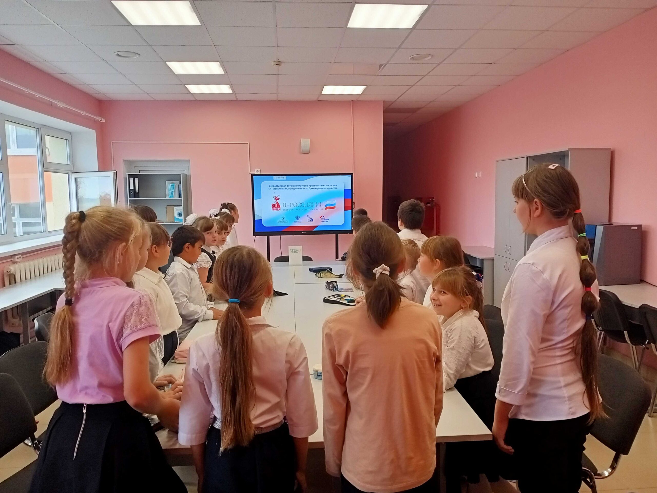 В начале октября учащиеся 3-4 классов ГБОУ СОШ с. Новодевичье приняли участие в акции «Я — россиянин». Мероприятие прошло в кабинете центра «Точка Роста». В начале его ребята исполнили гимн нашей страны, потом им показали видеоурок по теме и предложили выполнить задания к нему. Учащиеся приняли активное участие в уроке.