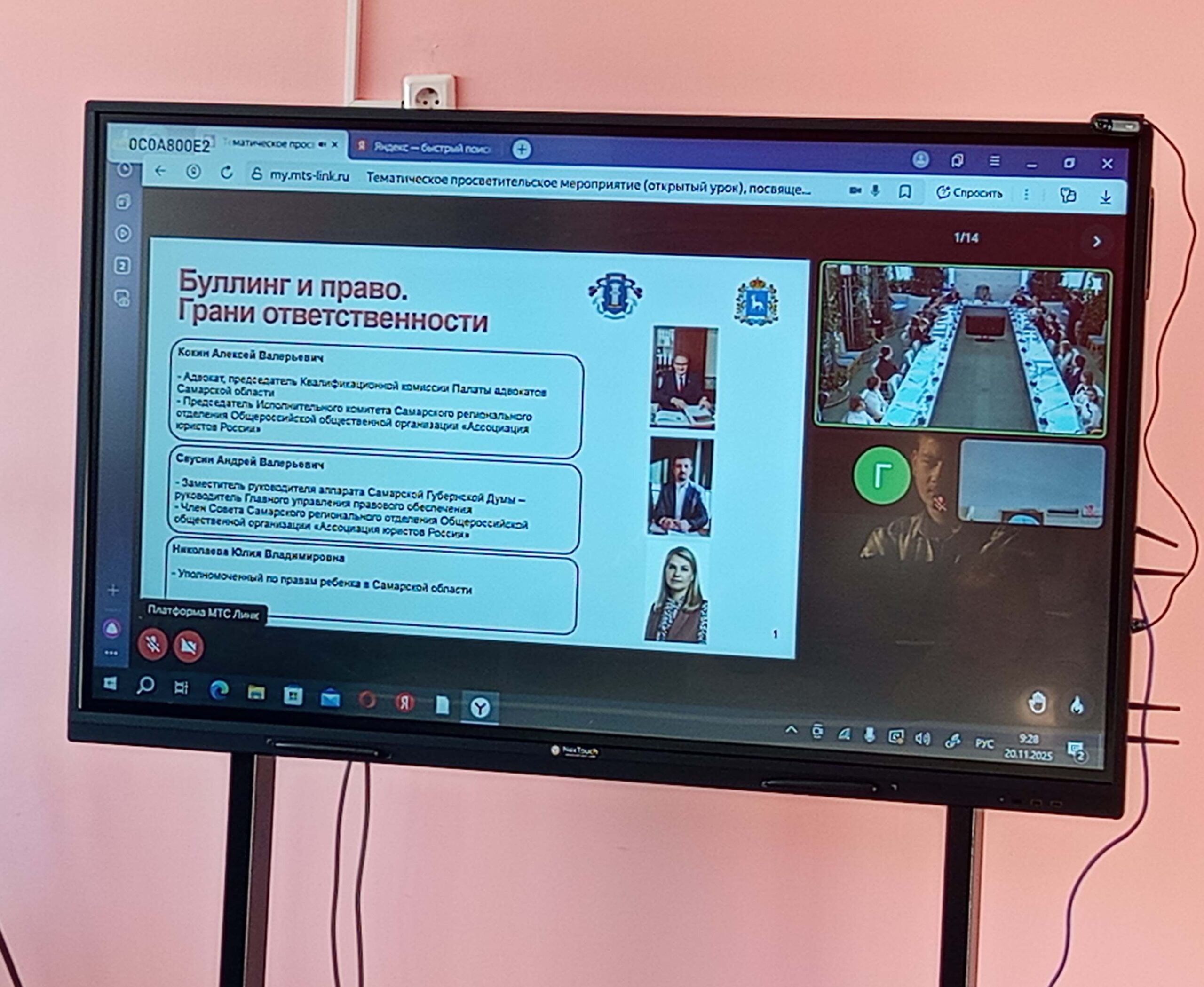 20 ноября 2025 года учащиеся 9-11 классов ГБОУ СОШ с. Новодевичье приняли участие в тематическом просветительском мероприятии в режиме видео-конференц-связи, посвященного Всероссийскому дню правовой помощи детям, на тему «В мире прав и обязанностей. Правовая грамотность», которое было организовано Комитетом Самарской Губернской Думы по законодательству, законности и правопорядку совместно с Уполномоченным по правам ребенка в Самарской области.
